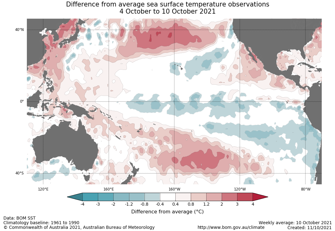 Bureau of Meteorology. The El NiñoSouthern Oscillation ENSO is currently neutral. However strengthening model outlooks and recent cooling in the tropical Pacific Ocean has raised the chance of La Niña forming in 2021.